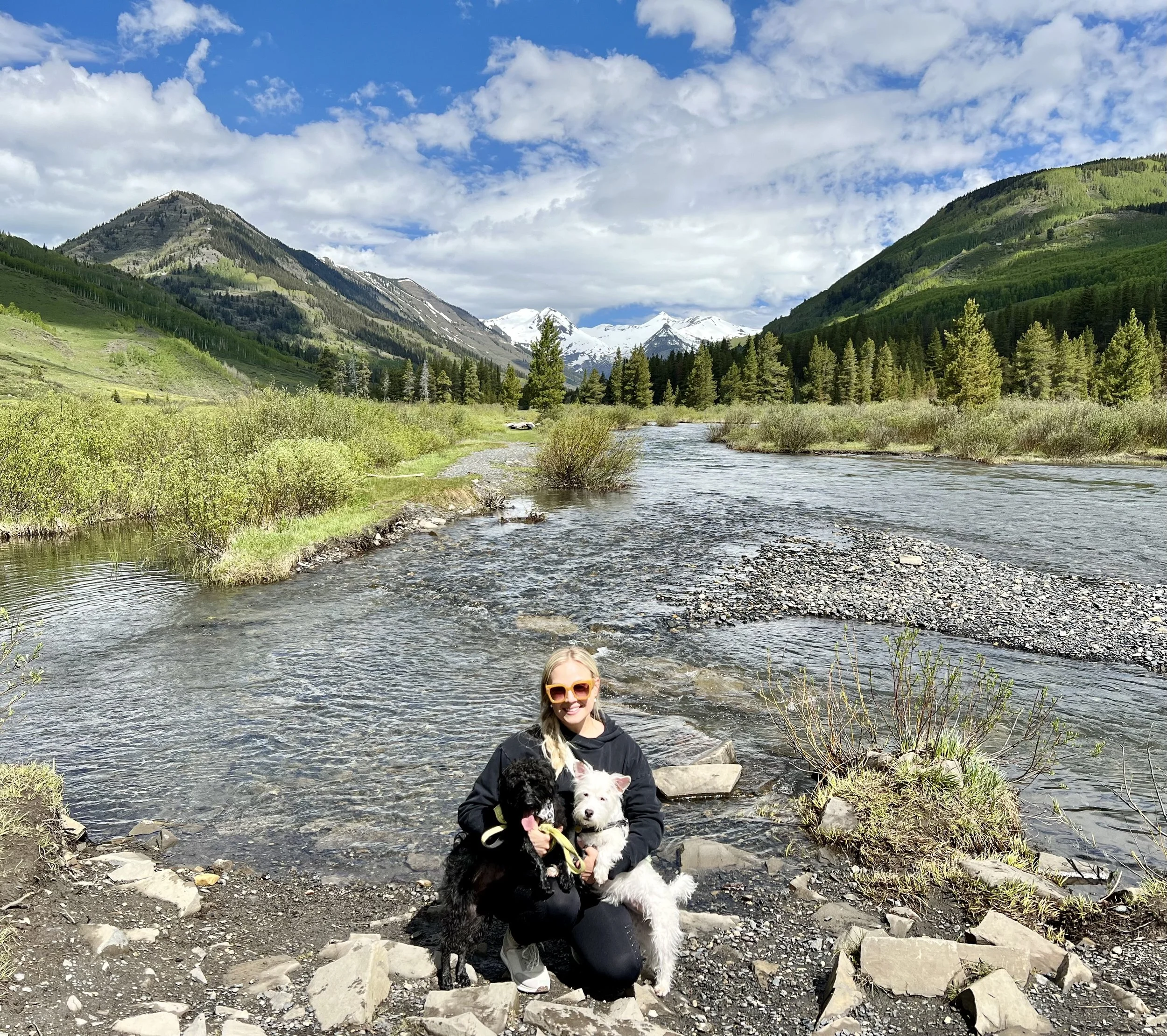 Outside of all this, I love being in the great outdoors, ideally near the water, art of all kinds, a full body laugh, snacks, and my dogs. I bet we’ll get along great.